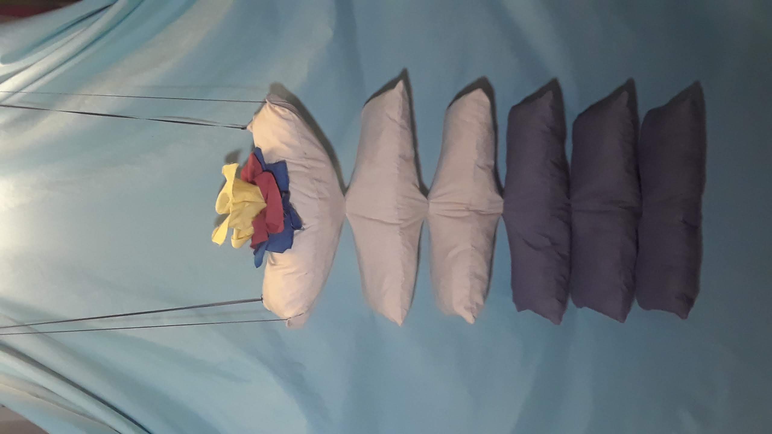 Six pillows (or three, the purple ones might get removed), about 5' tall, 1.5 feet wide, with a flower on top