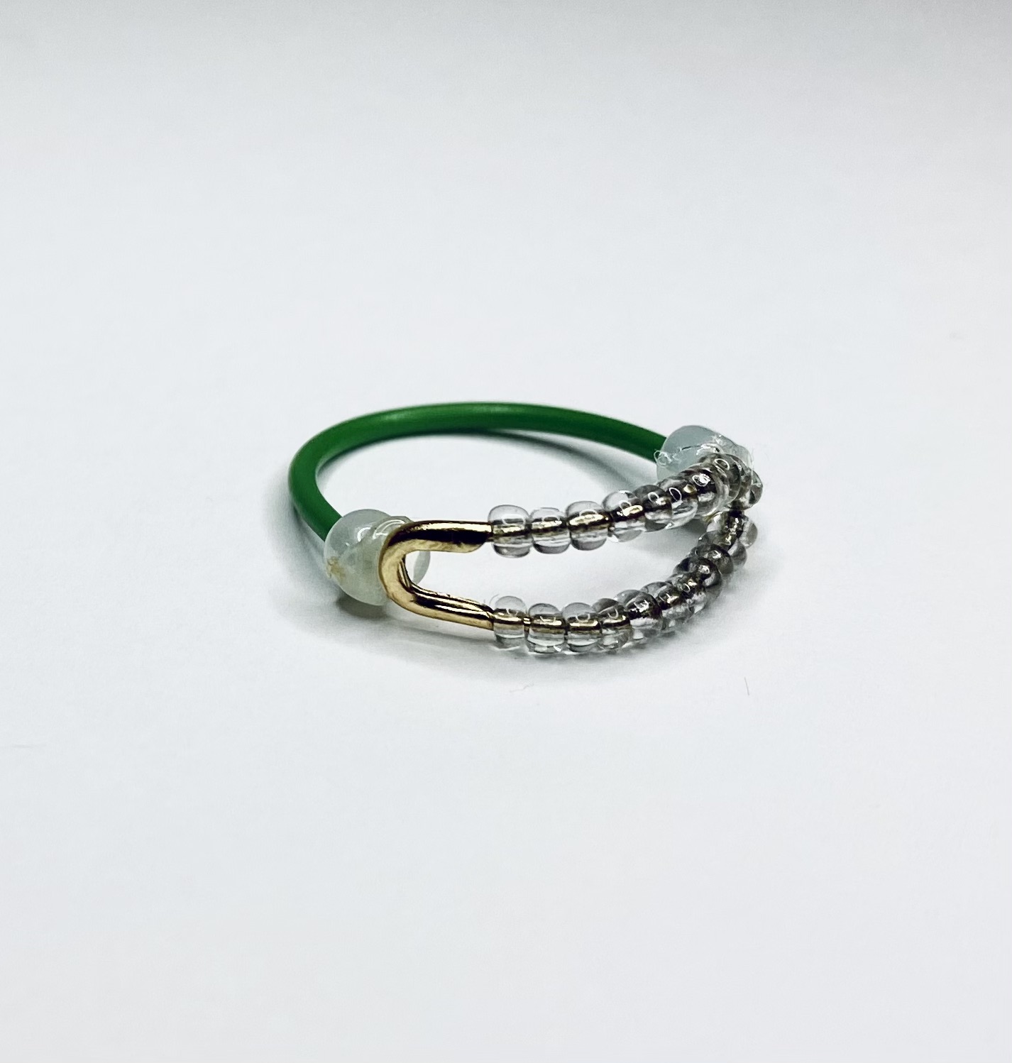 Unique ring created out of electrical wire, beads, and a safety pin. Dimensions: 2.3cm x 2.3cm x 0.8cmChain Link Love: